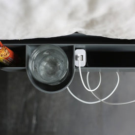 Enter The Night Caddy - night stand is clutter free, and my charging cables are right next to me - in arms reach!