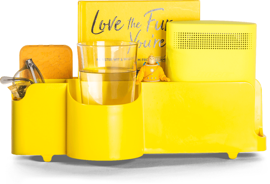 The Night Caddy® is the deluxe bedside organizer that securely keeps essentials within arm's reach. It's the perfect solution for dorm rooms, small apartments and those with limited (or no) space for an end table. Wake up with your phone fully charged. Don't worry about losing the remote. Stop knocking over your night time beverage.